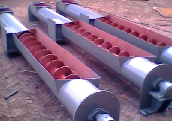 旋轉的螺旋葉片將物料推移而進行螺旋輸送機輸送,使物料不與螺旋給料機葉片一起旋轉的力是物料自身重量和螺旋給料機機殼對物料的摩擦阻力。螺旋給料機旋轉軸上焊的螺旋葉片,葉片的面型根據輸送物料的不同有實體面型、帶式面型、葉片面型等型式。螺旋給料機的螺旋軸在物料運動方向的終端有止推軸承以隨物料給螺旋的軸向反力,在機長較長時,應加中間吊掛軸承。